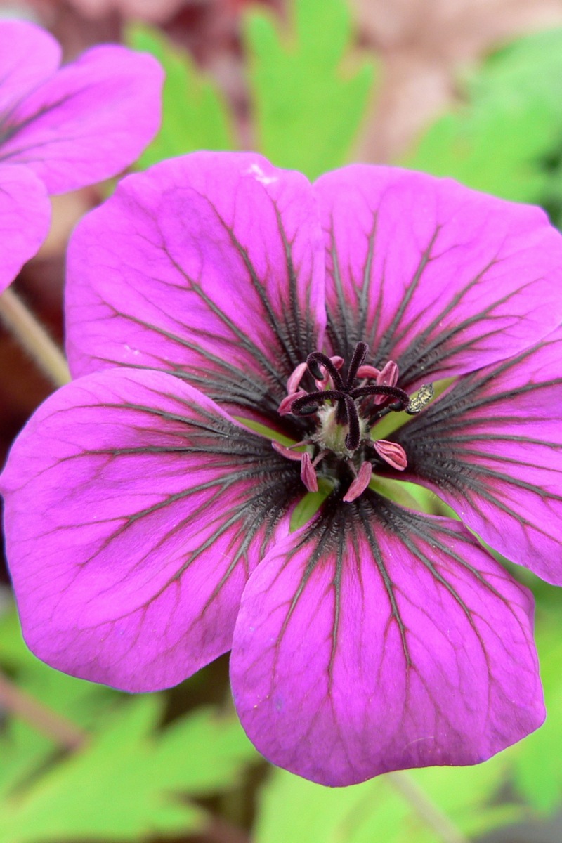 Герань Анн Фолкард (Ann Folkard) - это один из лучших сортов с яркими цветками. Растение будет расти в большинстве почв при наличии хорошего дренажа. Предпочитает солнце или полутень, но также будет терпеть и полную тень (с плодородной влажной почвой). Окраска цветов пурпурно-малиновая с темными прожилками и с черным «глазком» в центре. Листья глубоко-рассеченные, очень декоративны. Их окраска в начале золотистая, а потом приобретает желто-зеленый оттенок. Кустик раскидистый, требует много места на клумбе. Саженцы герани Анн Фолкард можно располагать в центре или на краю цветника, и вдоль дорожек.