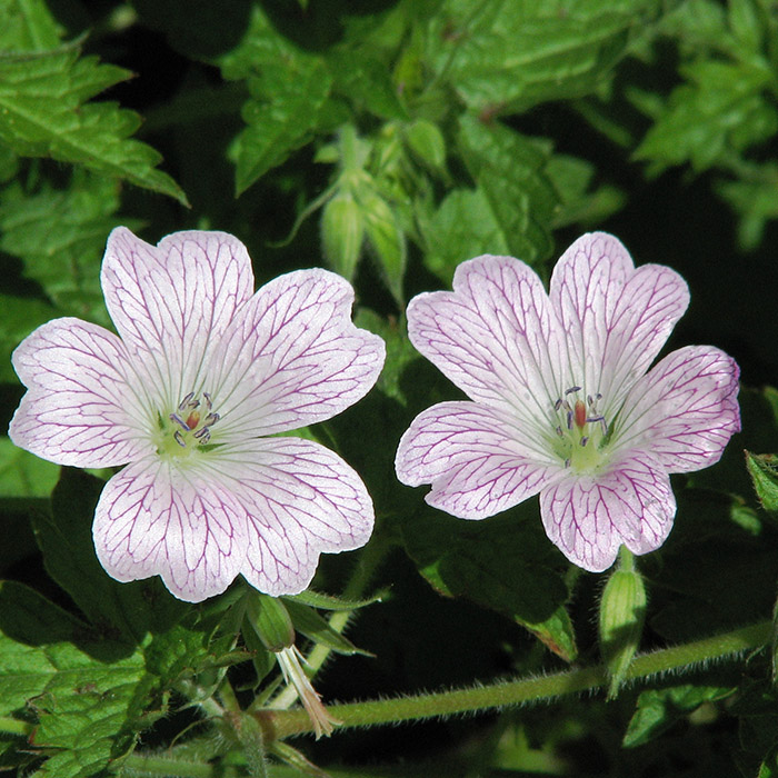 Герань "Катрин Адель" (Katharine Adele) принадлежит к эффектному , красивому и компактному сорту. Высота взрослого растения едва достигает 30см. Листья декоративные, весной с оранжевым центром, затем с буро-коричневым резным центром и зелеными краями. Цветки небольшие, белые с четкими пурпурными прожилками, с июня до заморозков. Для саженцев герани "Катрин Адель" предпочтительнее выбирать солнечные участки и плодородные, богатые гумусом, хорошо дренированные почвы. Растение засухоустойчиво.