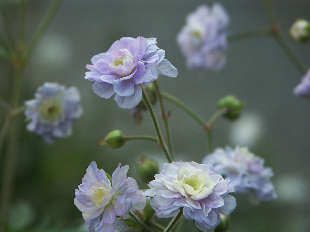 Герань луговая Саммер Скайс (Summer Skies) – корневищный сорт, кустистый, состоящий из небольшого количества разветвленных стеблей. Листья расположены на черешках, они длинные и покрыты короткими волосками. В середине июня расцветают махровые большие цветы лилового оттенка, собранные в соцветия зонтики. Период цветения длится с июня и до сентября. Размещать рассаду рекомендуется в свежей почве ранней весной или уже в конце летнего сезона. Луговая герань хорошо приживается на солнце или в условиях несильной тени. Для высадки подходит любая почва, но с умеренным увлажнением, лучше суглинистая. Цветы часто применяются для оформления ландшафтных композиций, например, бордюров или живых ковров.