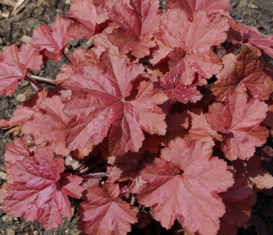 Гейхера CHRISTA гибридная. Высота растения достигает 20-25 см, цветонос 35 см. Молодые листья розово-пурпурные с персиковым оттенком, затем становятся персиковыми с лёгким серебристым налётом. Цветы светло-розовые. Растет как на солнце, так и в полутени.