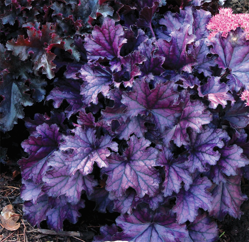 Гейхера COCO - миниатюрный сорт гейхеры. Листья темно-фиолетовые с черным отливом. Высота растения 15 см., диаметр 25 см. Цветки белые. Растение цветет в мае-июне.