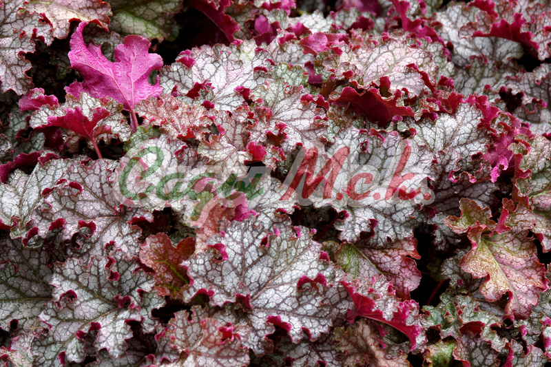 Гейхера Dark Mystery - эффектное почвопокровное растение, низкорослое, компактное, лиственное, высотой до 15 см и диаметром до 30 см с зимующими розеточными листьями. Листья крупного размера, немного вытянутые, с волнистыми ажурными краями, гладкие, по форме напоминают дубовые. Они собраны в плотные розетки. Их окраска довольно редкая – здесь и темно-фиолетовый, почти черный цвет с бронзовым отливом, и серебряный (с внешней стороны) и малиново-красный (снизу). Листья меняют свой цвет на протяжении сезона.Цветки -мелкие колокольчики, образовывают соцветия-метёлки, располагаются на высоких цветоносах высотой до 60 см. Зацветает гейхера в июне – июле.