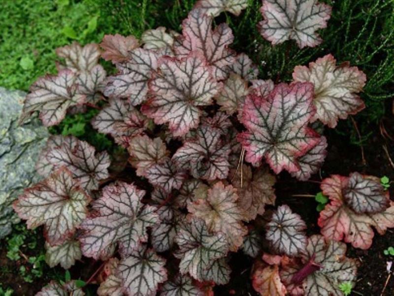 Гейхера Mаrs – многолетнее травянистое растение из семейства камнеломковых. Особую декоративность придают ему крупные, волнистые бархатистые листья серебристо-дымчатого цвета с ярко выраженным коралловым оттенком и четким темным жилкованием. В начале лета над травянистыми кустиками появляются высокие метелки мелких, невзрачных кремовых цветков. В начале и в конце вегетации окраска растений становится кроваво-красной, что вполне оправдывает название сорта. Гейхера «Марс» отличается своей неприхотливостью и повышенной выносливостью, легко выдерживает морозы. Молодые растения в отсутствие снега желательно укрывать.
