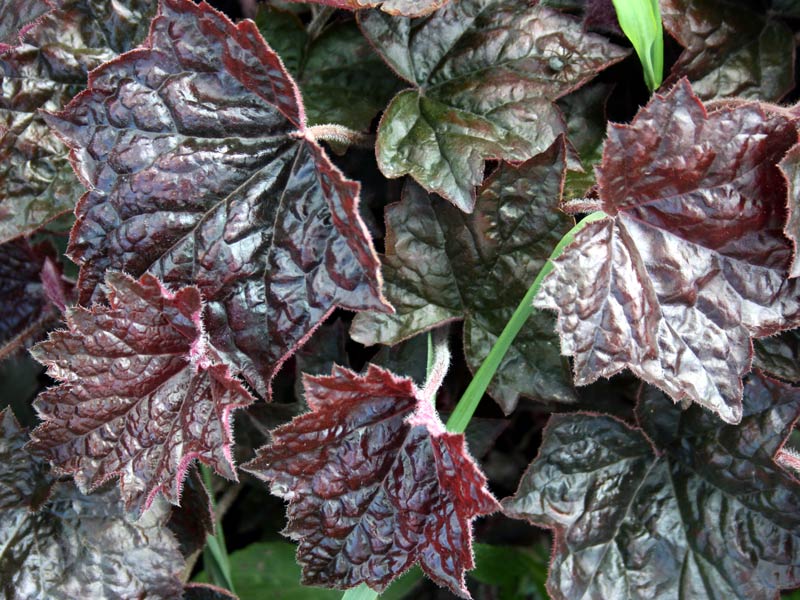 Гейхера Rасhеl – красивое гибридное растение из группы трясунковидных. У нее округлые, треугольно-лопастные листья, сверху зеленовато-коричневые с серебристым отливом, снизу красновато-пурпурные. Их блестящие листовые пластины, покрытые изящной сеткой зеленых прожилок, собраны в невысокие травянистые кустики до 25–35 см высотой. В начале лета над опрятной розеткой появляется множество нежно-розовых маленьких цветочков, качающихся на изящных темных цветоносах. Сорт неприхотливый и выносливый. Мирится с ажурной тенью, хотя больше предпочитает солнечные, плодородные и увлажненные участки.