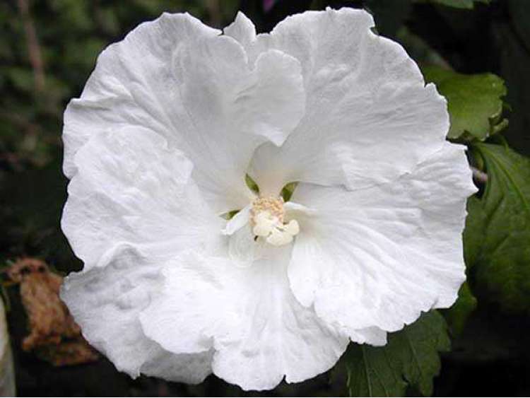 Гибискус Diana - пряморастущий кустарник до 2 м высотой. Цветки до 12 см в диаметре, чисто-белые, лепестки с волнистыми краями. Цветение обильное.