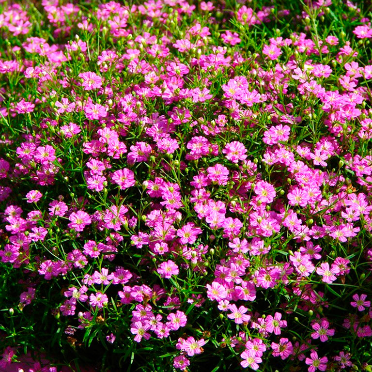 Гипсофила метельчатая Пинк (Pink) – это многолетнее растение, которое вырастает в высоту около 120 см. Листья маленькие и узкие. Стебли очень ветвистые, образуют шаровидный куст. Цветочки мелкие розового оттенка и объедены в метельчатые соцветия. Цвести начинает с июля до конца августа. Плюсы гипсофилы Пинк: - не нуждается в частых пересадках - устойчива к заморозкам - эффектный вид Семена гипсофилы Пинк не желательно садить вблизи грунтовых вод. Растение предпочитает расти на рыхлой супесчаной почве. Может расти на одном месте около 5-7 лет. Хорошо смотрится в групповых цветниках и самостоятельно.