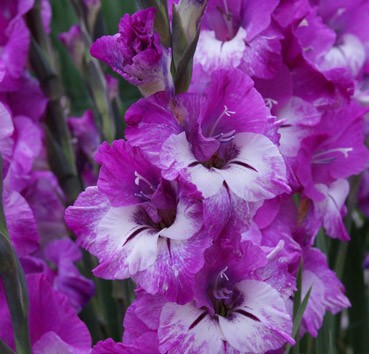 Гладиолус Andrews (Эндрю)- крупноцветковый гладиолус, вырастает до 120 см. Цветки до 14 см в диаметре, формируют широкое соцветие. Лепестки гладиолуса этого сорта гофрированные, цвета причудливо перетекают от сливочно-белого до сиренево-розового, что придает гладиолусу Andrews (Эндрю) оригинальность.