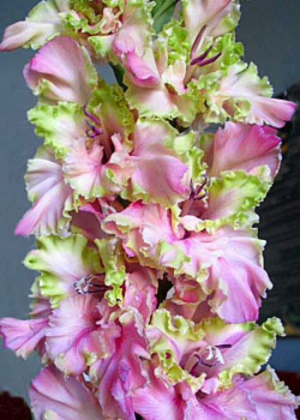 Описание Гладиолус Монтезума- Высота 170-180см. Соцветие 90см, 23 бутона (8-9 одновременно открыты). Бутон 15см. Гладиолус — многолетнее клубнелуковичное растение семейства Ирисовых.