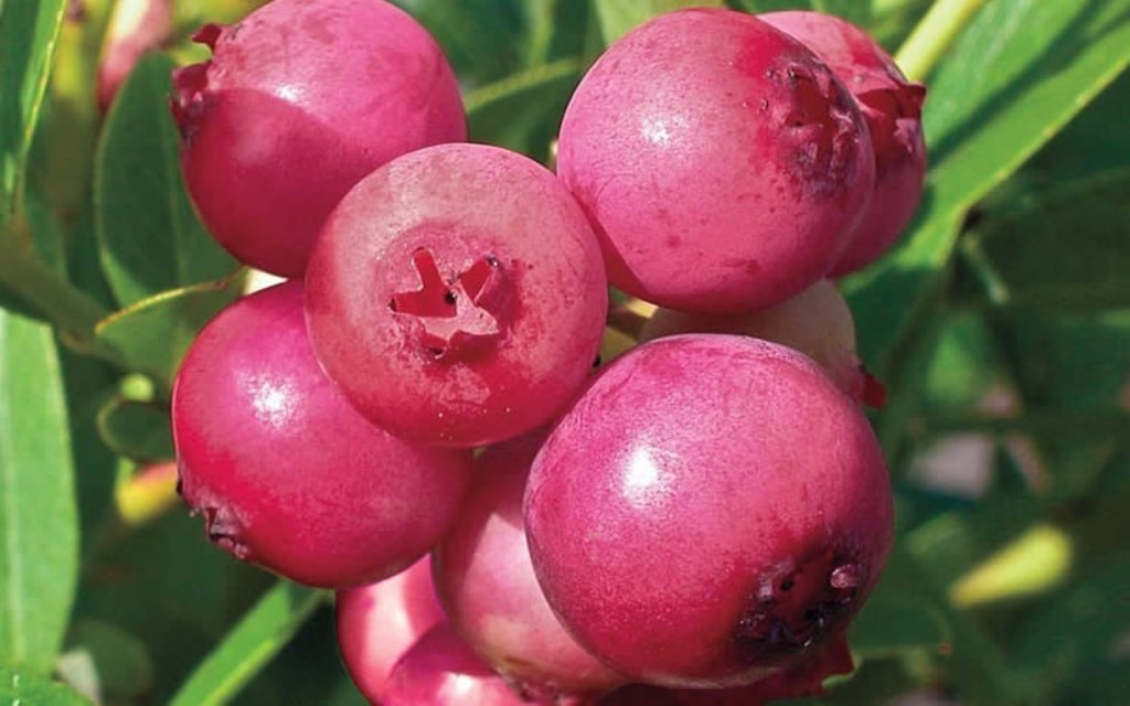 Голубика Pink Lemonade - необычный сорт голубики, с розовыми ягодами. Куст высокорослый, высотой около 3 м, быстрорастущий, декоративный, очень красивый и нарядный при цветении. Цветет многочисленными бутонами нежно-розового цвета. Листочки разноцветные: розовые, желтые, багряные и зеленые. Срок созревания урожая – с июля по сентябрь. Урожайность до 4 кг сочных и вкусных ягод с куста. Ягоды крупные, розовые, изумительного вкуса, сочетания сахарной сладости обычной голубики, с освежающей, лимонной кислинкой. Сорт морозостойкий до -34ºС