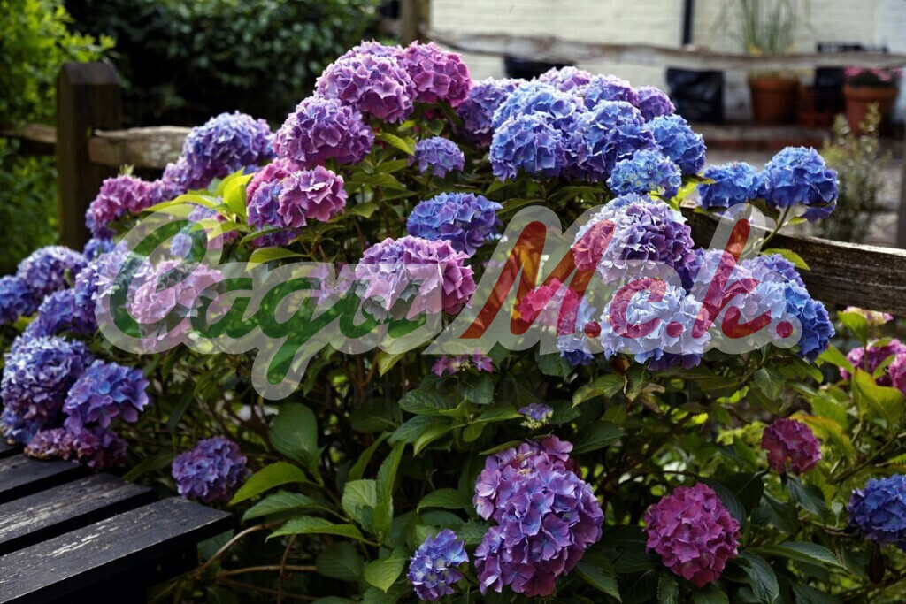 Гортензия крупнолистная Hamburg - цветки розовые или фиолетово-синие, с бахромчатыми лепестками. Соцветия крупные, шаровидные, диаметром до 20—25 см. Цветение обильное, длительное. Куст крепкий, округлый, высотой около 1.5 м, с крупными, зелеными листьями.