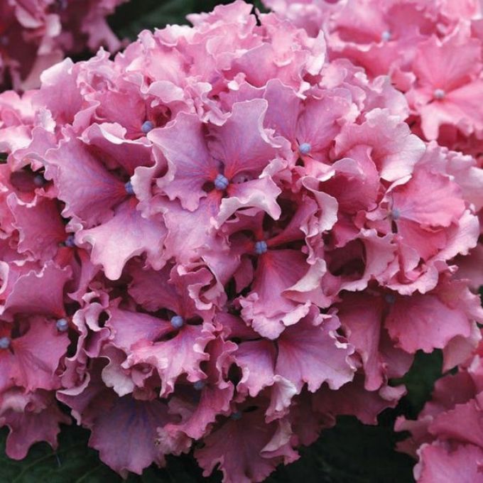 Гортензия крупнолистная Spike - ремонантный, непрерывноцветущий сорт. Соцветия крупные, шаровидные, с многочисленными, сильно волнистыми, розово-голубыми цветками. Растение достигает высоты 1,2 м.