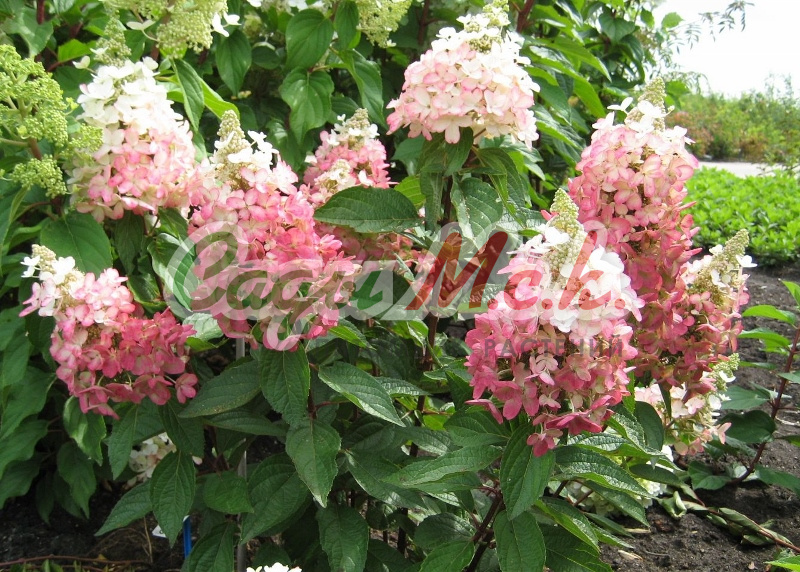 Саженцы гортензии метельчатой Grandiflora – популярное садово–парковое растение. Среди метельчатых гортензий, эта крупнейшая. Достигая 3 метров в высоту, куст имеет пышную крону, светло–зеленые, шершавые листья, до 15 см в длину. Кистевидные, большие соцветия бывают в диаметре до 20 см. Используется в контрастных композициях, для зеленых опушек либо как живая изгородь. Крупномер Grandiflora плохо переносит уплотнение почвы, разрыхлять нужно пару раз за сезон, а также наличие в почве извести. Хотя кустарник морозоустойчив, первую зиму его лучше укрыть.