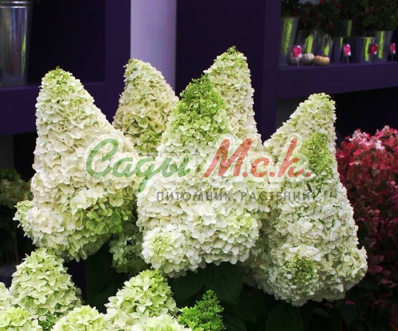 Новый морозостойкий сорт гортензии метельчатой. Гибрид между сортами Limelight и Grandiflora. Раскидистый крупный кустарник до 2м высотой, и диаметром до 1,5м. Цветет очень крупными плотными коническими соцветиями около 40см длиной, состоящими из белых, в начале цветения - зеленоватых, цветков, которые к осени приобретают легкий оттенок розового. Цветет обильно с июля по октябрь на побегах текущего года. Листья крупные, к осени желтеют.