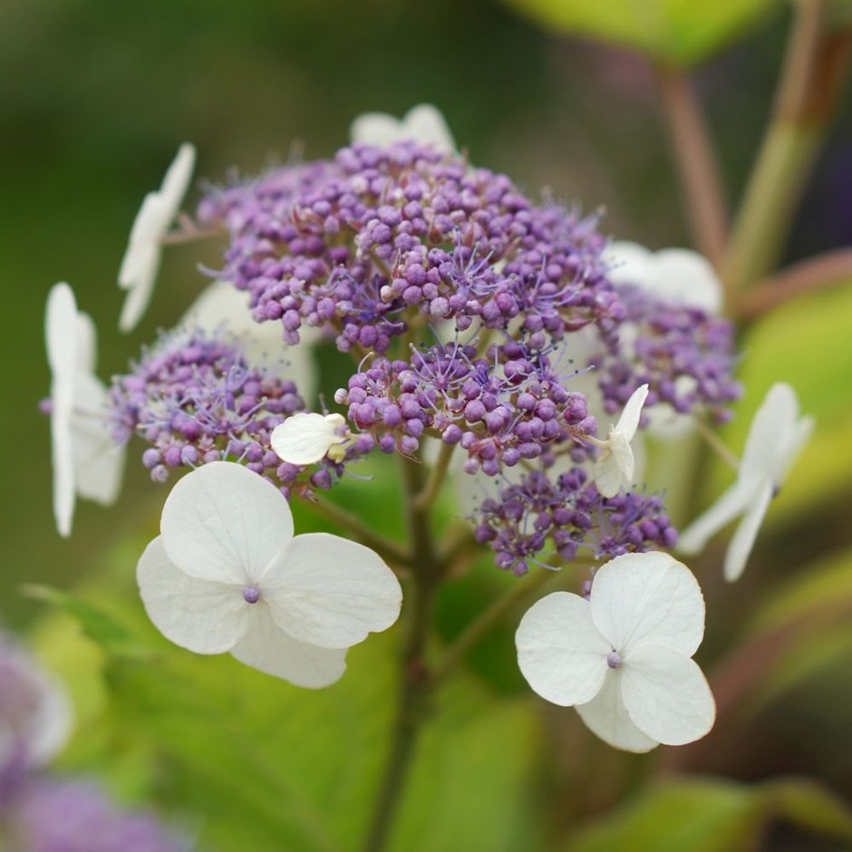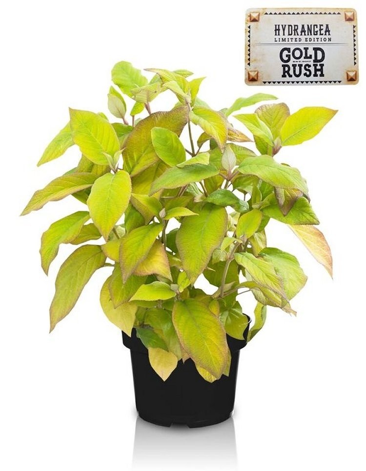 Hydrangea aspera GOLDRUSH Giel PBR - красивая золотистая листва красиво сочетается с фиолетовыми с белыми цветами. Goldrush цветет летом и становится около 2 м в высоту и 1 м в ширину. Посадите Goldrush на солнце во влажную, но хорошо дренированную почву.Требует на зиму укрытия