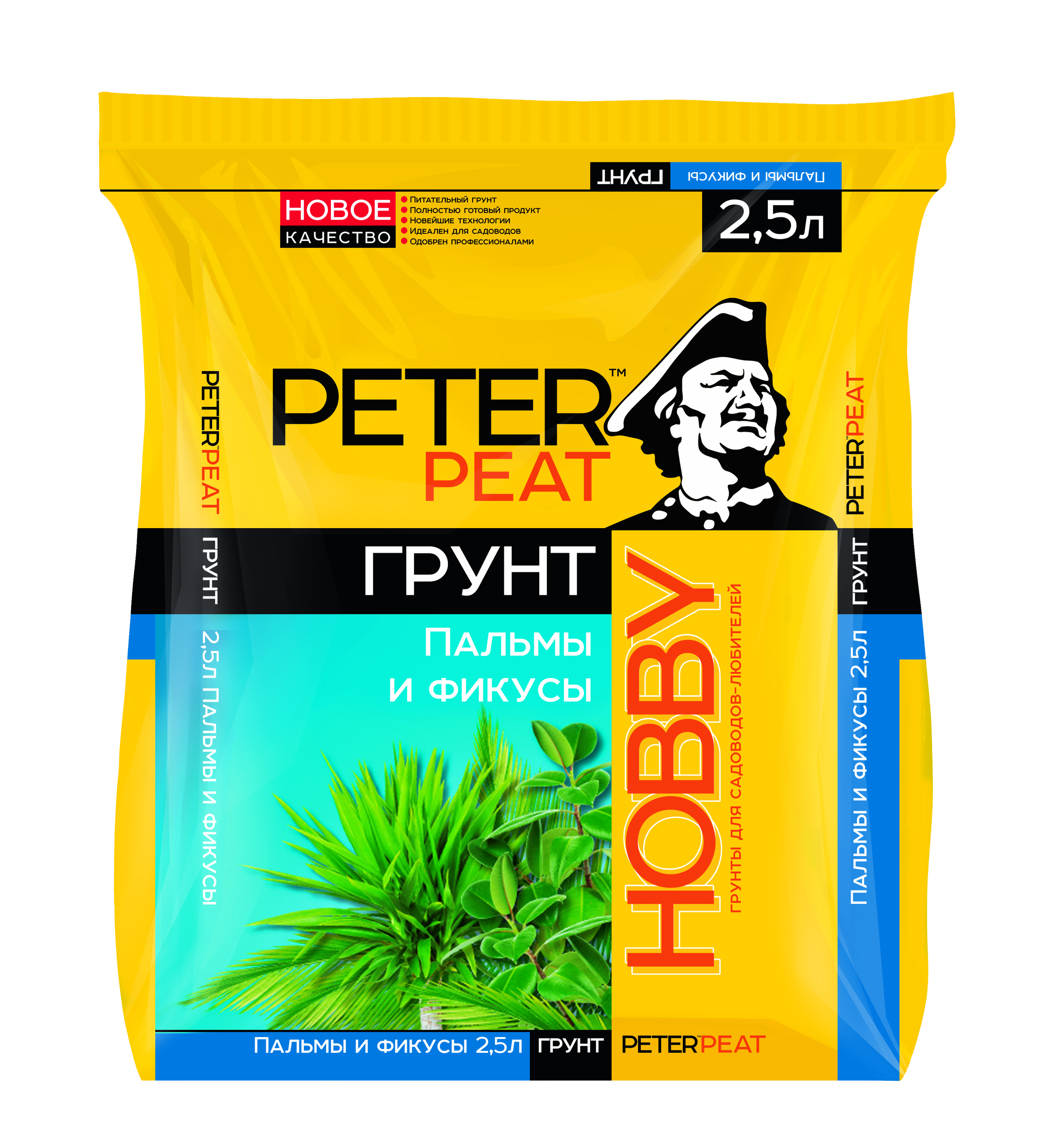 Грунт для пальм и фикусов (Линия Хобби) 2,5 л - питательный грунт для комнатных растений. Для выращивания пальм, фикусов, монстеры, юкки и др. крупномерных растений. Улучшает декоративные качества растений.