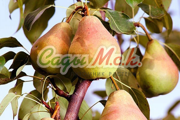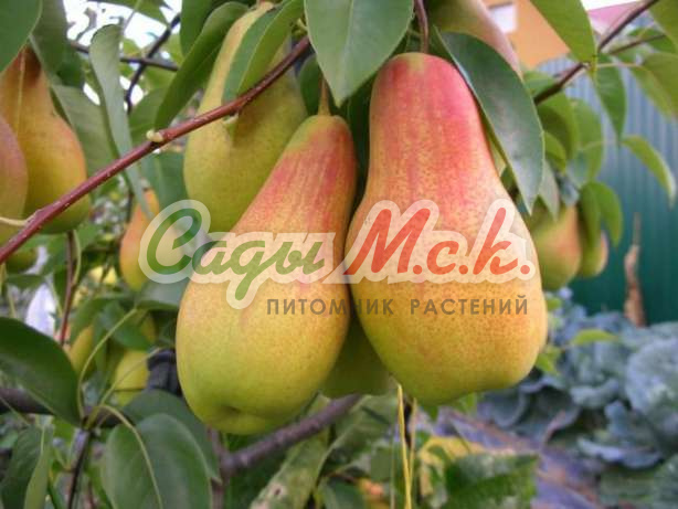 Груша Краснобокая - сорт осеннего созревания. Деревья средней высоты. Крона редкая, округлой формы. Цветет сорт очень крупными цветками чашевидной формы розового цвета. Груши одномерные, форма правильная, классическая. Кожица очень нежная, с маслянистой гладкой поверхностью. Собирают урожай после середины сентября. При съеме плоды ровной зеленой окраски с небольшим румянцем малинового цвета. К потребительскому созреванию груши приобретают желтый оттенок. Мякоть спелых плодов обладает отличным вкусом и высокой сочностью. Сорт прекрасно выдерживает очень сильные морозы.