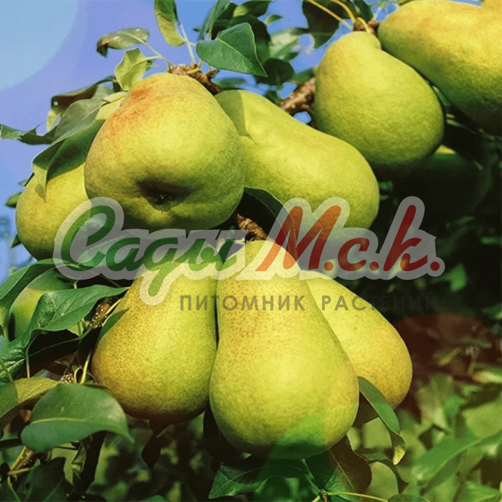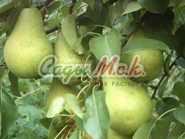 Саженцы груши домашней Лесная красавица принадлежат к группе осенних деревьев, урожай на которых созревает во второй-третьей декадах августа. Деревья среднего размера с пирамидальным типом кроны. Под плотной шероховатой кожицей прячется сочная маслянистая вкуснейшая мякоть кремового цвета. Плоды на дереве зеленовато-желтые, при созревании золотисто-желтые с ярким румянцем. Сбор урожая производится, не дожидаясь полного созревания.