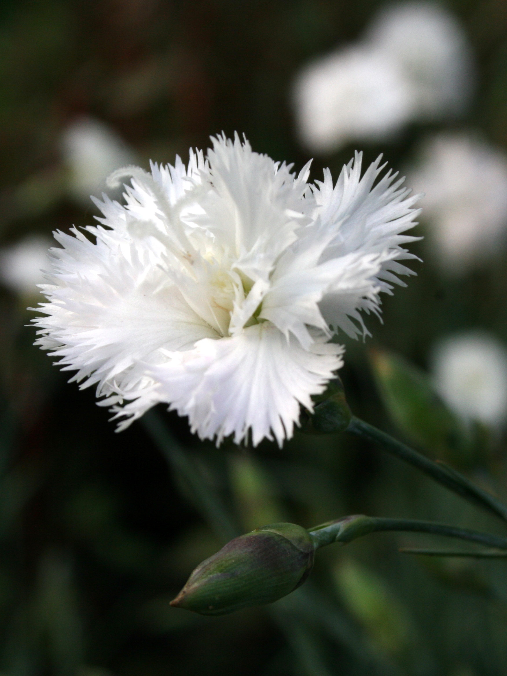 Популярное двулетнее травянистое растение. Формирует хорошо развитые кустики до 50 см высотой. Стебли прямые тонкие коленчатые, облиственные. Листья прикорневые узколинейные собраны в основании куста в розетку. Стебли и листья покрыты серебристо-сизым налетом. Цветки белоснежной окраски махровые (до 5 см в диаметре) расположены на верхушках побегов и обладают тонким ароматом. Используют для всех видов цветников и качественной срезки, в воде долго сохраняет декоративность. Неприхотливое холодостойкое растение, предпочитает солнечные участки с легкой плодородной некислой почвой. Посев семян проводят в конце мая-начале июня на разводочные гряды на глубину 0,5-1 см. Сеянцы в фазе 2-3 настоящих листьев продергивают или пикируют с интервалом 10 см. В августе их пересаживают на постоянное место с интервалом 20-30 см. В первый год растение формирует розетку листьев. На зиму молодые растения желательно укрыть лапником. Цветение наступает на второй год и длится с июля по август.