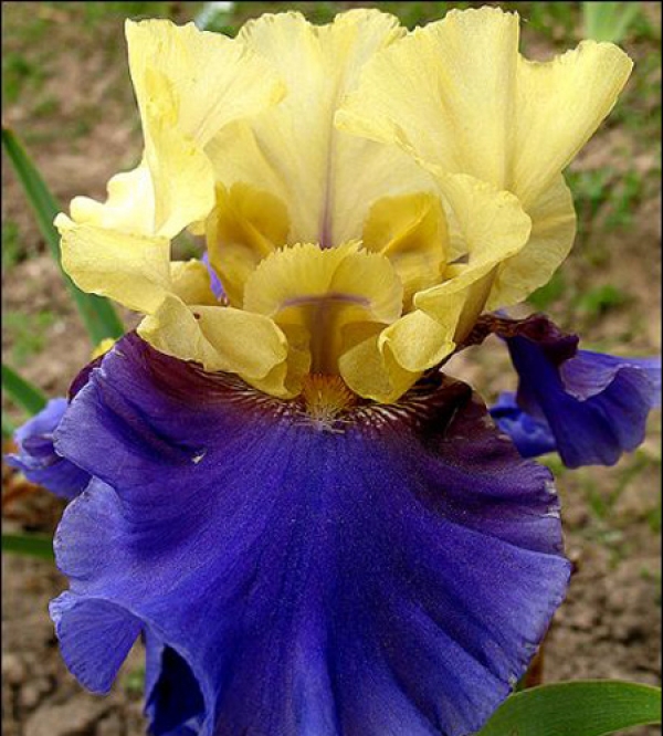 Фолы сине-фиолетовые с не большой желтой каймой. Огромный, гофрированный. Высота цветоноса 90 см.