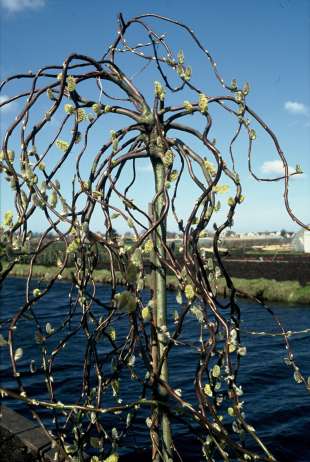 Ива Curly Locks отличается широкораскидистой кроной со скрученными свисающими побегами и декоративными крупными сережками.Высота зависит от высоты штамба (от 60 до 170 см). Крона широкораскидистая, отличается своеобразно скрученными побегами, диаметром 1,5 – 2,5 м. Растет очень быстро. Листья слабоморщинистые, широкоэллиптические, длиной 6-10 см, зеленые, с изнанки с войлочным опушением. Осенняя окраска желтая. Цветет за две недели до распускания листвы. Многочисленные сережки длиной около 4 см., серебристые, блестящие, при распускании золотисто-желтые.