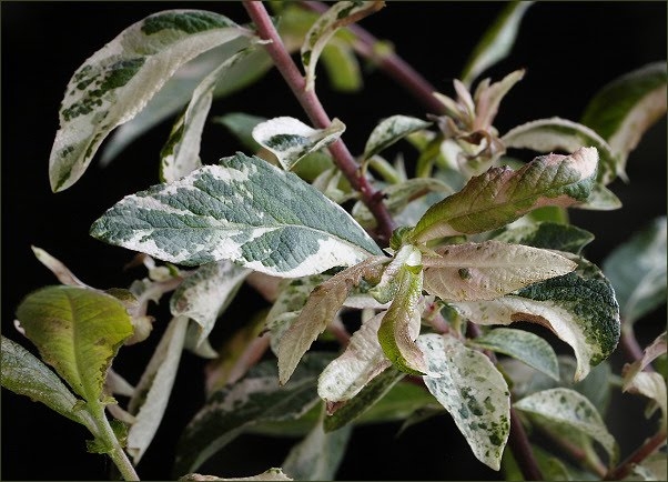 Побеги поднятые, сильно растущие. Листья пёстрые, зелёно - бело - красные. Рекомендуется подстригать 2-3 раза в год. Общей чертой названных здесь сортов ивы является их (менее или более) медленное возрастание. Достигают они небольших размеров (миниатюры), поэтому прекрасно годятся для посадки даже в небольших садах или участках. В натуральной среде, часто горной,образуют кустарниковые или стелющиеся формы. Миниатюрные ивы прививаются чаще всего на крупных побегах сильно растущих сортов. Высота штамба (ствола) подбирается в зависимости от силы и характера роста отдельных сортов и составляет от 60 до 170 см. Цветы доставляют пыльцу и нектар. Ивы требуют ежегодной подрезки после отцветения. Растут они на любой почве, чтобы только она была влажной. Предпочитают солнечные места. Прекрасно выглядят посаженные одиночно и в группах, неподалёку от бассейнов или водохранилищ, но также и в альпинариях. Можно их также выращивать в контейнерах, используя для декорации террас, балконов и тп