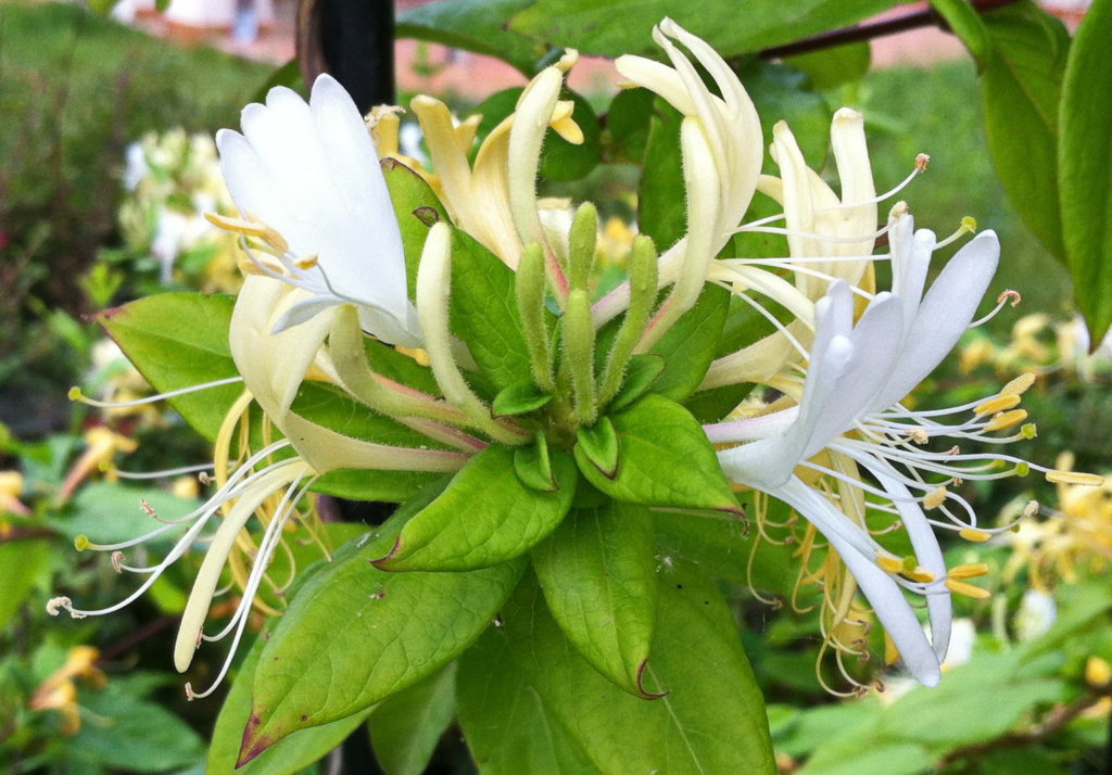 Жимолость Purpurea - вечнозеленый кустарник. Листья темно-зеленые, зимой – темно-пурпурные. Цветет обильно и продолжительно. Цветки меняют свою окраску: сначала белые, потом желтые. Форма цветка трубчатая. Ягоды черные, несъедобные. Растение достигает высоты до 3-4 м. Куст сильнорослый, раскидистый.