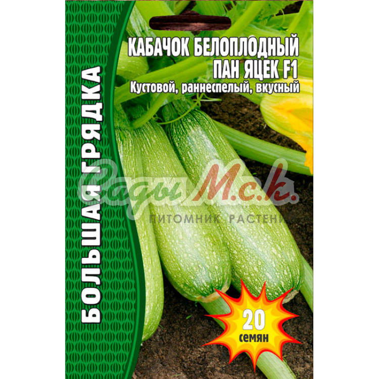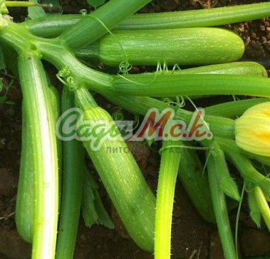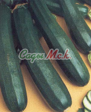 Раннеспелый (40–45 дней от всходов до начала созревания) сорт кабачка цуккини. Выращивают как рассадным способом, так и прямым посевом в грунт. Растение кустового типа, с высоким насыщением женских цветков. Плод удлиненно-цилиндрический, черно-зеленый, массой 0,7–0,9 кг. Кора средней толщины. Мякоть светло-бежевая, плотная, нежного вкуса. Молодые завязи (10–15 см) используют вместо огурцов в салатах. Крупные плоды (1 кг и более), собранные до заморозков и ночных холодов, могут храниться в комнате до июня–июля (на свету при температуре не ниже 12°С). Урожайность 6,0–7,0 кг/растение. Обладает высокой устойчивостью к мучнистой росе. Посев на рассаду — в апреле, высадка в грунт — в мае–июне. Посев непосредственно в грунт — в конце мая–июне. Схема посадки: 60x60 см. Хорошо отзывается на внесение органических удобрений.