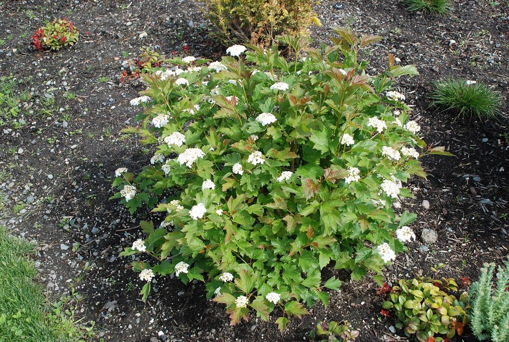 Саженцы калины Compactum, относится к не крупномерным кустам, однако обладают большими преимуществами.Этот сорт компактного растения, растет быстро до высоты 1,5 м.У взрослого растения, крона округлая, хотя ветки растут строго вверх. Листва на калине этого сорта, темная, зеленая и блестящая.Пора цветения наступает в конце весны. Соцветиям характерен кремовый оттенок и нежный аромат.Плоды кустарника, можно употреблять в пищу, вкус у них слегка горьковатый, а цвет насыщенно-красный. По своим полезным качествам, калина Compactum , не отличается от обыкновенной.