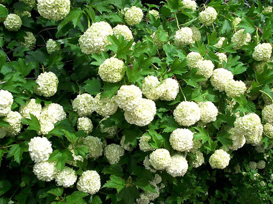 Калина обыкновенная Бульденеж (Розеум), вырастая, становятся крупномерным растениями. Ветки, растут горизонтально или свисают по бокам.Цветет растение сильно, большими округлыми цветками. По мере роста, их цвет от светло-зеленого, до молочного. Отцветая, становятся розоватыми. Этот сорт не плодоносен. Листья имеют пальцевую форму, несколько напоминающие кленовые листья. Окрас зеленый, а осенью приобретают оранжевый окрас.Ежегодно, куст вырастает на 30 см в рост, и 40 см в ширину.Используется для декоративного оформления сада, в качестве одиночных или групповых композиций.