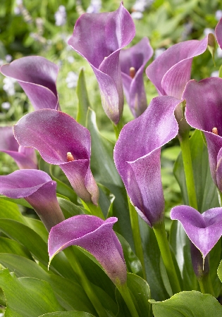Калла Лавендер Джем относится к группе многолетних клубневых растений. Цветок сиреневый с тёмно-розовым, воронкообразной формы. Высота прямых цветоносов достигает 45 см. Листья стреловидные, остроконечные или в форме сердца, темно-зеленые с белым крапом. Цветение продолжается с июля по сентябрь. Клубни каллы высаживают в апреле на глубину 15 см на расстоянии 30 см друг от друга. Предпочитают солнечное место, влажную, дренированную, богатую полезными ископаемыми и гумусом почву. Перед самыми заморозками, надземную часть растения удаляют, клубни выкапывают, оставляя 2-3 листочка на черенке, и кладут на хранение. Размножение производится делением клубня. Используется в ландшафтном дизайне, на выгонку и срезку.
