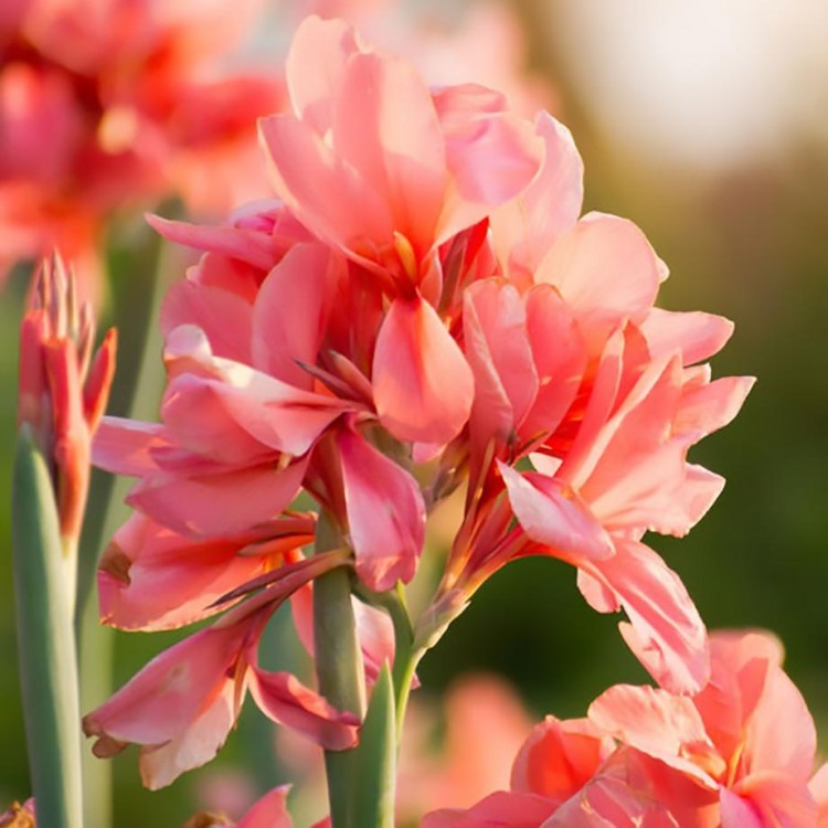 Канна зеленолистная Сити оф Портленд (City of Portland Canna) – мощное высокорослое растение, которое прекрасно смотрится на больших клумбах, в парках, городских скверах. В высоту куст достигает 100-120 сантиметров, ствол прочный, толстый, огромные листья равномерно распределены по всему стеблю. Метельчатое соцветие состоит из множества крупных бутонов, каждый из которых может достигать 12 сантиметров в диаметре. Цветы нежно-розовые с оригинальной желтой серединкой. Цветение продолжительное, с июня по октябрь. Растение хорошо переносит солнце, устойчиво к сильным ветрам, на протяжении всего периода цветения нуждается в обильном поливе.