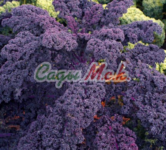 Красивый, экзотический вид этой листовой капусты (кале) привлекает внимание садоводов, и ландшафтных дизайнеров для создания необычных композиций сада и огорода. Ярко и эффектно выглядит кале в сочетании с многолетними цветами и другими видами декоративной капусты. Растение высотой 30-50 см не формирует кочан, а состоит из рыхлой розетки зеленых, курчавых с махровыми краями листьев. Неприхотливо в уходе, устойчиво к неблагоприятным погодным условиям. Сохраняет свою декоративность весь сезон, до заморозков. Листья содержат витамины и полезные микроэлементы со слегка горьковатым, как у редиса вкусом. Подходят для украшения салатов, закусок и блюд. Посев на рассаду проводят в конце марта-начале апреля. Всходы появляются через 6-9 дней. Высадка рассады в грунт — в конце мая. Пикировка в фазе 1-2 настоящих листьев. Посев в открытый грунт —в мае-начале июня. Хорошо отзывается на регулярный умеренный полив, рыхление и подкормку. Высота капусты очень сильно зависит от питания, особенно азотного. Растение, пересаженное в ноябре в горшок, можно поставить в доме и наслаждаться свежей зеленью долгое время.