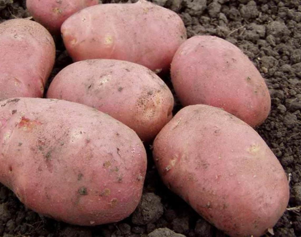 Цветки крупные, красно-фиолетовые, собраны в венчики. Ботва развивается быстро, но клубни растут медленнее, с задержкой. Урожайность отличная, с одного куста собирают по 7-9 крупных корнеплодов.