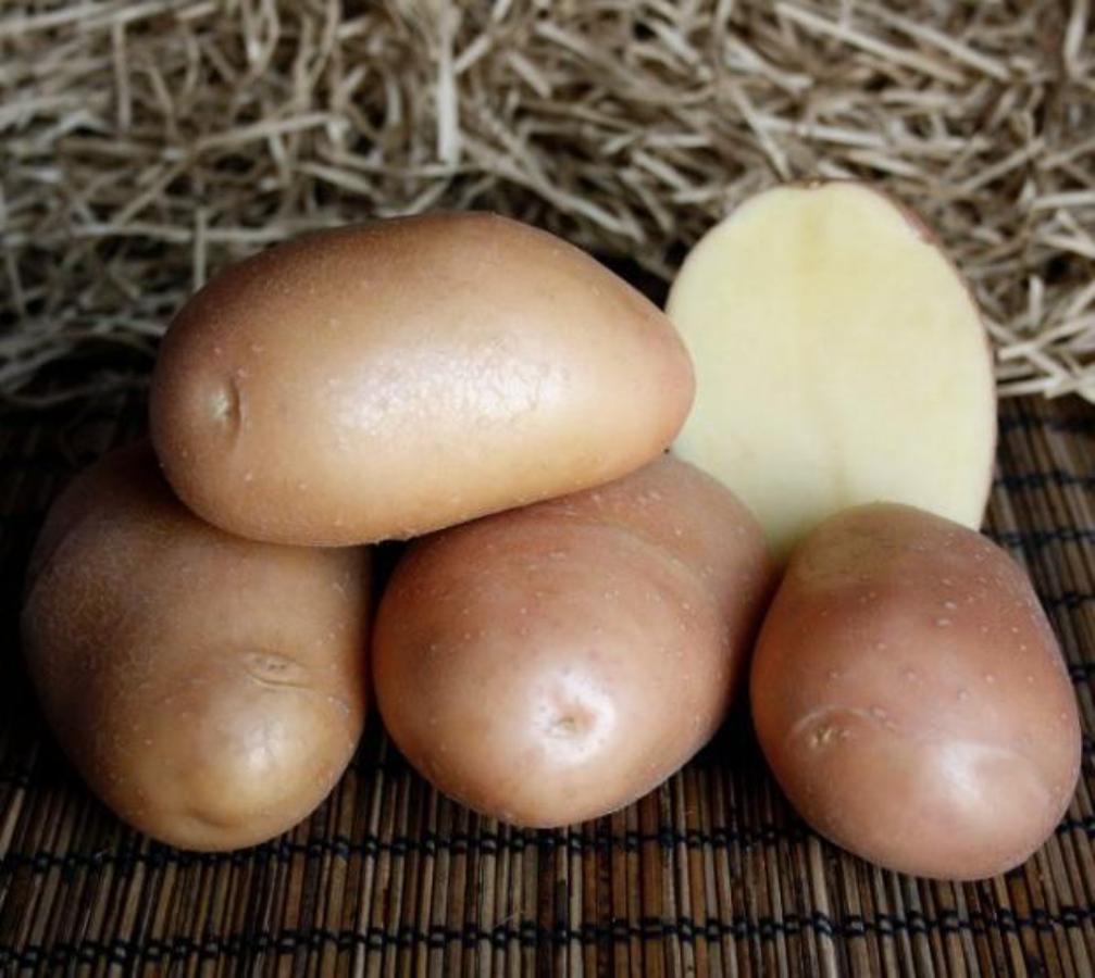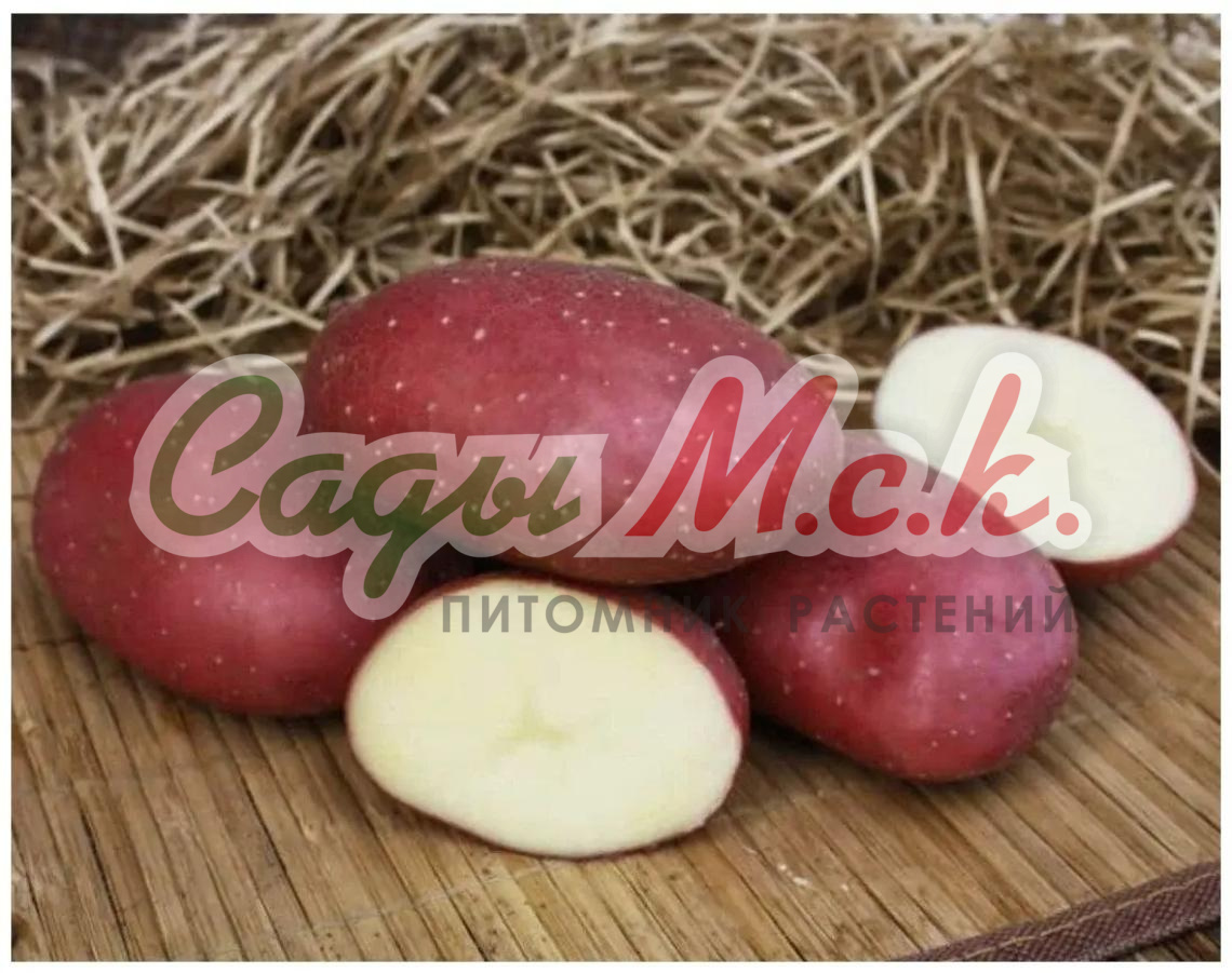 Количество клубней в гнезде — до 13 штук. клубни однородные, сходные по размеру и массе. Урожайность — 187−410 ц/га. Масса товарного клубня — 98−135 грамм. Товарность — 78−98%. Лежкость — 94%. Клубни имеют удлиненно-овальную форму, ровную поверхность без дефектов (бугров и рытвин). Кожура красного цвета, гладкая на ощупь. Мякоть светло-желтой окраски. Глазки мелкие, залегают поверхностно, почти не заметные. Содержание крахмала 13,7−16,4%