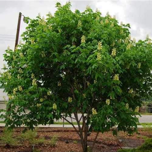 Aesculus x arnoldiana, родственный знакомому конскому каштану, представляет собой естественный гибрид трех североамериканских видов. Большое лиственное дерево, оно имеет гораздо более большие размеры, чем конский каштан. Огромные «свечи» из бледно-желтых цветов, отмеченных красным цветом, покрывают дерево поздней весной, а осенью за ними следуют зеленые плоды, которые раскалываются, обнажив орехи. Листья большие, разделенные на листочки; в молодости светло-зеленые, летом они становятся более темно-зелеными, а осенью часто демонстрируют очень хороший цвет. Устойчив к городскому загрязнению и является отличным вариантом дерева для большого сада.