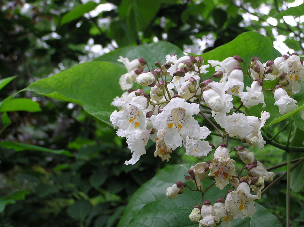 Катальпа Фаргеза форма Дюкло — стройное листопадное дерево с блестящими плотными листьями, очень декоративно в пору цветения.