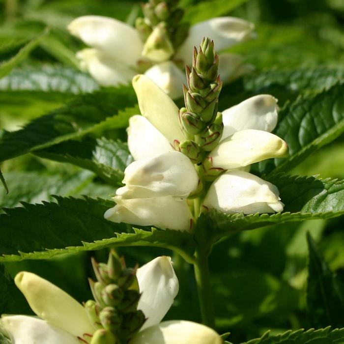 Хелоне косая Альба отличается от других сортов хелоне своими белыми цветами. Вообще это растение еще довольно редко встречается в России, однако заслуженно становится все более востребованным садоводами. Благодаря своей высоте в 80 см им можно оформлять группы, изгороди, а оригинальная форма цветков разнообразит зелень. Прекрасно оформляет водоемы. Цвести хелоне начинает в августе и продолжает до конца осени. Соцветия группируются на верхушках побегов. Лист широкий, ланцетовидный, по краям зазубренный, блестящий, темно-зеленый.