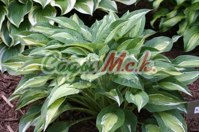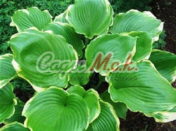 Хоста Аnn Kulра – многолетнее декоративное растение, образующее ярусный куст высотой до 50 см. Листовые пластины достаточно плотные, шелковистые, со слегка волнистым краем, небольшими выемками и сильно выраженным жилкованием. Они образуется весьма декоративный, плотный и компактный куст, который в середине лета зацветает, выбрасывая цветоносы с небольшими, лавандового цвета колокольчиками. Но заметным растение становится благодаря цвету своих декоративных листьев. Сердцевидные, голубовато-зеленые с золотисто-кремовым центром и зеленым краем – такую красивую окраску невозможно не заметить. Со временем светло-кремовый центр становится шире, а вот окантовка листа, наоборот, сужается. Гибридный сорт хорошо себя чувствует и в тени, и на солнце, предпочитая купаться только в утренних его лучах. Он может длительное время расти на одном месте. Но для сохранения расположенной по центру полосы его желательно часто делить.