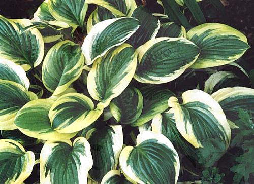 Хоста Austin Dickinson– многолетнее гибридное растение, образующее мощный куст средних размеров, во взрослом возрасте достигающий ширины свыше 110 см. Сорт отличается большими блестящими листьями овальной формы, собранными в крупные розетки. Сине-зеленые, морщинистые, слегка волнистые, среди других представителей декоративных многолетников они выделяются широкой чисто-белой или бело-кремовой окантовкой. Эффектность кусту придают и ароматные темно-пурпурные цветы, появляющиеся в июле-августе. Хоста Austin Dickinson предпочитает влажные, слабокислые почвы и хорошо разрастается в уголках сада с легкой тенью.