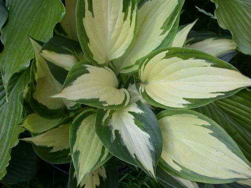 - Характеристики кремово-белый центр с неравномерной широкой ярко-зеленой каймой, лист овальный с острым кончиком