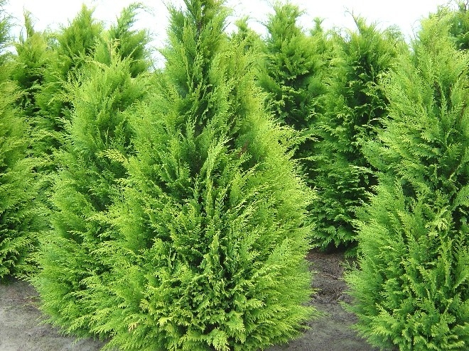 Хвоя чешуевидная, расположена веерообразно в одной плоскости, толстая, сернисто-желтая, в тени становится ярко-зеленого цвета со слабым золотистым оттенком.