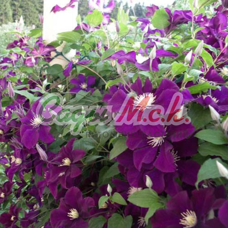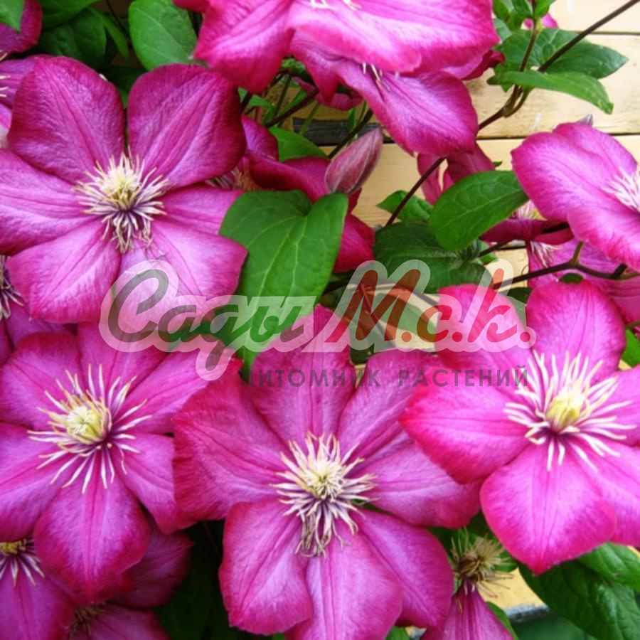 Саженцы клематиса Ernest Markham представляют собой умеренно растущий сорт с обильным цветением. Крупные бархатистые бутоны этого цветка искристые, насыщенного сочно-красного оттенка, в их сердцевине располагаются коричнево-кремовые тычинки. Распускаются они в период с июля по октябрь. Данный сорт отлично подходит для выращивания воле ограждений, беседок, решеток и сеток. Клематис может хорошо карабкаться вверх по естественным опорам, например, по деревьям и кустарникам. Это растение довольно сильно любит солнечный свет, но боится ветра. Идеально подходит для выращивания в больших контейнерах.