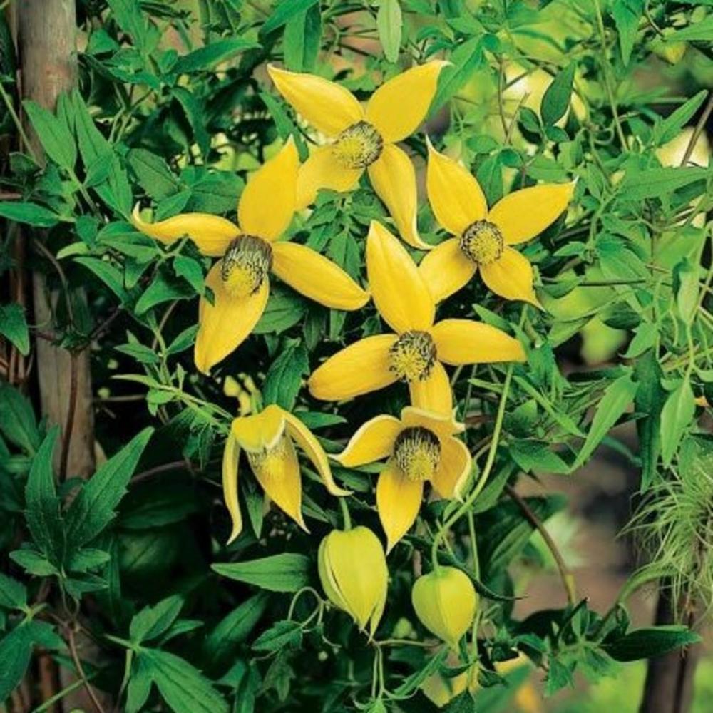 Клематис Helios - неприхотливая холодоустойчивая лиана, вырастающая до 2,5 м в высоту. Зацветает через 6-8 недель после всходов, на следующий год цветы появляются ранней весной на молодых растениях. Соцветия золотисто жёлтые, 7-8 см в диаметре, фонариковидной формы, немного наклонённые, состоящие из четырёх чашелистников. Растение к почвам нетребовательно, предпочитает солнечное местоположение.