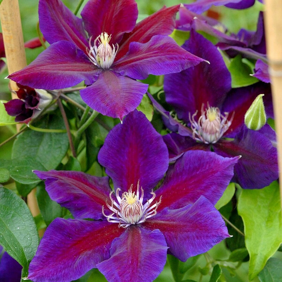 Клематис Julka - польский сорт с крупными цветками. Цветёт с июня по август. Цветки мерцающие, бархатистые, насыщенно-фиолетовые с эффектной ярко-красной полоской и светло-желтыми тычинками. Диаметр цветка - 16 см. Высота растения достигает 2 м. Устойчивый к заболеваниям, морозостойкий, проверенный сорт.