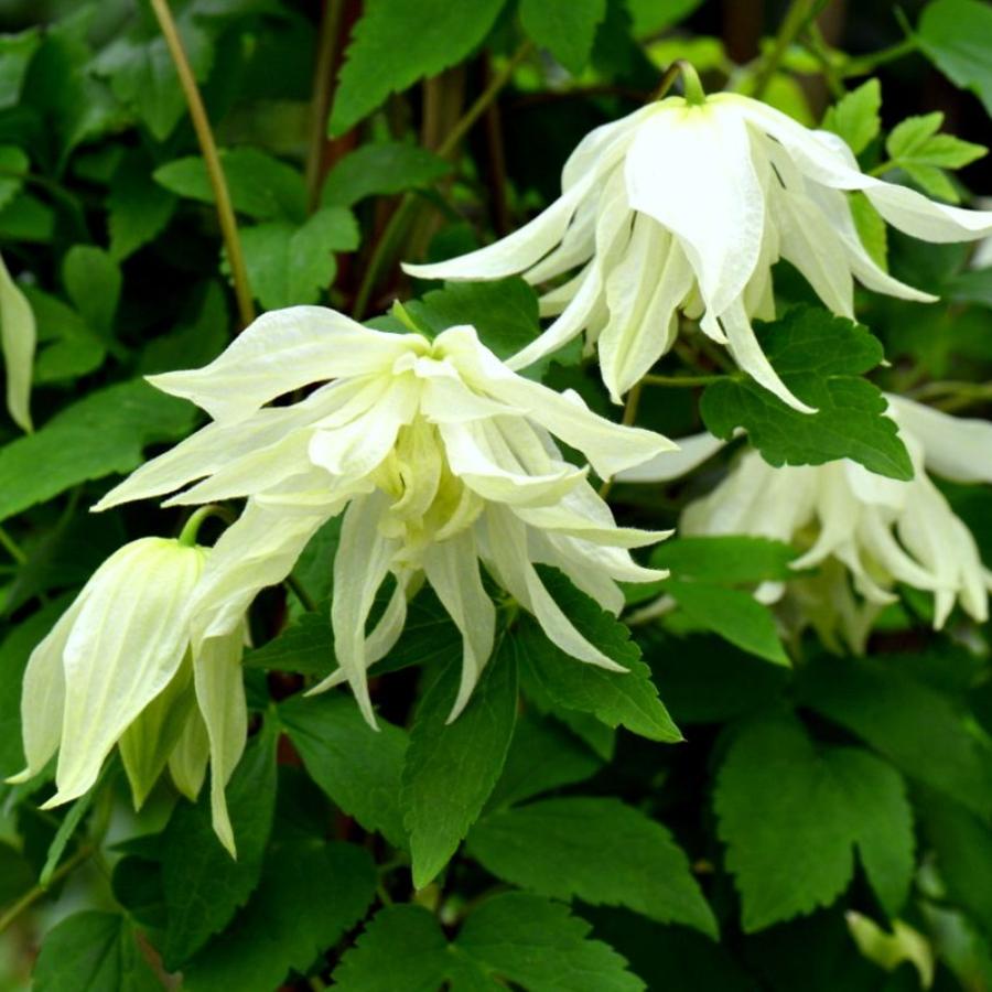 Клематис Lemon Dream - польский сорт. Цветки всегда махровые, очень крупные для группы (диаметром 10-12 см), светло-лимонного цвета, во время распускания бутонов – зеленоватые, а когда полностью распустятся белеют, колокольчикообразные, свешивающиеся, приятно пахнущие грейпфрутом, сидящие на пурпурных цветоножках. В одном цветке есть 4 чашелистика и 12-15 ланцетовидных, слегка волнистых, остро заканчивающихся стаминодий. Тычинки с желтыми пыльниками размещаются на зеленовато-лимонных нитях со светло-желтыми пестиками. Растение цветет в мае и повторяет цветение, но уже менее обильно –летом. Листья красивые, темно-зеленые, относительно крупные (до 21 см длины и 14 см ширины), тройные, тройчатосложенные, с красивой фактурой и зубчатыми краями листочков. Куст достигает высоты 2-3 м. Морозостоек и неприхотлив.