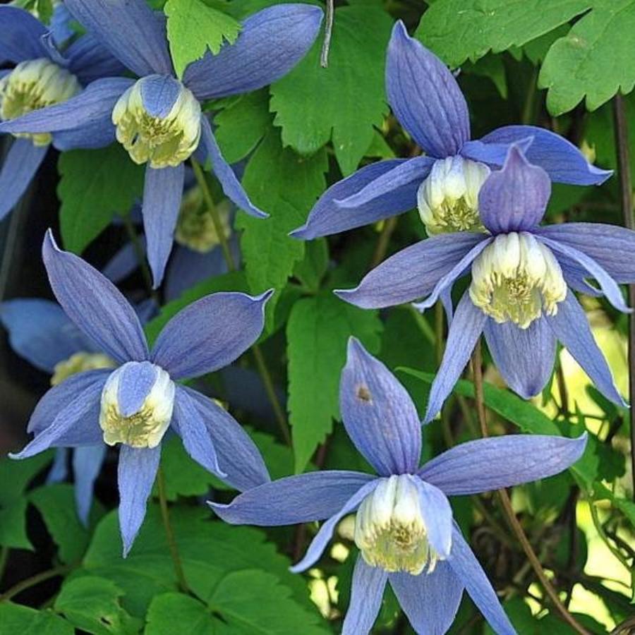 Саженцы клематиса Frаnсеs Rivеs – это неприхотливые декоративные лианы, которые уже в апреле обильно покрываются множеством изящных фиолетово-голубых цветков с контрастно выделяющейся белоснежной серединкой. Период цветения этого раннего сорта продолжается до июня. Важной особенностью этого клематиса является его неприхотливость и нетребовательность: он прекрасно растет без каких-либо специальных мер по уходу.Крупномер Frаnсеs Rivеs достигает высоты 2-3 м. Саженцы этого сорта обычно размещают возле стен или ограждений, камней и пней, а также деревьев и кустарников.