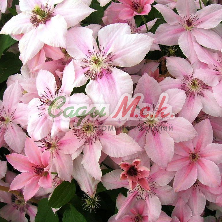 Клематис крупноцветковый Виолет Элизабет - с повторным цветением за период, первое цветение с мая по июнь (цветет полумахровыми цветками на побегах прошлого года), второе цветение с августа (цветет простыми цветками на побегах текущего года). Цветение очень обильное и продолжительное. Растение вьющееся, высота клематиса от 1,5 до 2,5 метров. Цветки крупного размера, жемчужно-розового цвета. На зиму Клематис крупноцветковый Виолет Элизабет требует слабой обрезки (достаточно легкой стрижки). Высадку производят в южной, западной или восточной части участка.