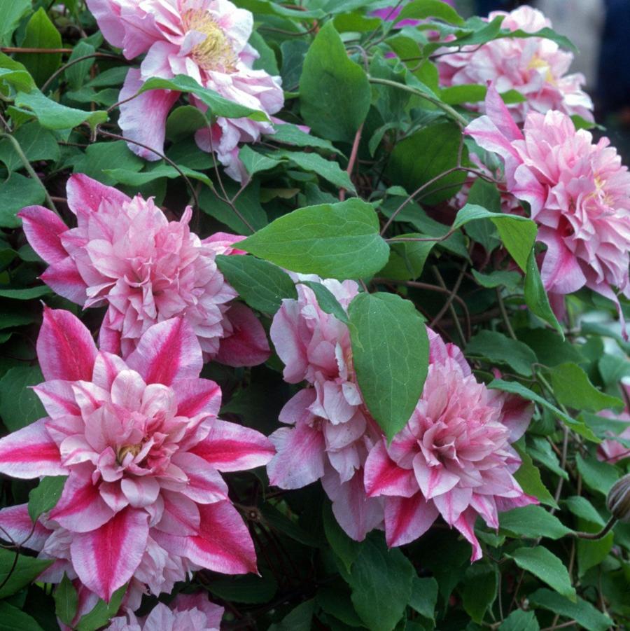 Клематис Patricia Ann Fretwell - сорт с розовыми, махровыми в мае-июне на прошлогодних побегах, цветками. У махровых цветков наружные лепестки больше внутренних, темно-розовые со светло-розовыми краями, а внутренние – светло-розовые с узкой, тёмно-розовой полосой посередине. На побегах этого года в августе-сентябре распускаются одиночные цветки. Тычинки кремово-белые. Сорт умереннорастущий. Лучше растёт и цветёт на солнечных местах. Хорош для выращивания у ограждений, беседок, решёток и других садовых опор. Высота растения - 2 - 2,5 м.