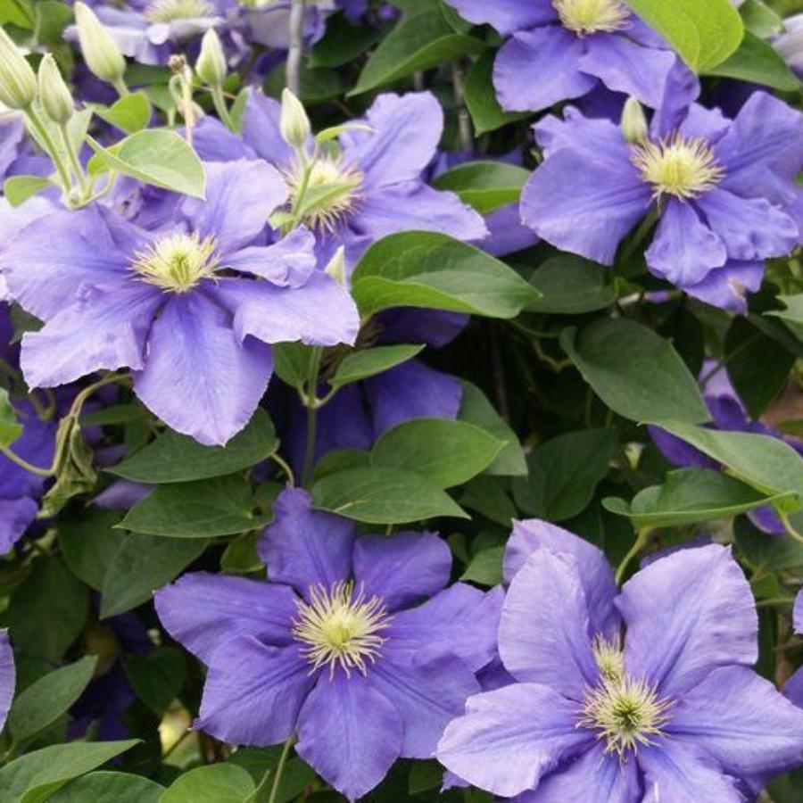 Клематис Ramona - очень красивый обильноцветущий сорт. Цветки крупные, диаметром 16-20 см. Чашелистиков 6-10. Они широкие, лавандово–голубые, при раскрытии бутона по центру лепестков заметна розовая полоса. Пыльники красно-пурпурные. Листья простые и тройчатые, крупные, темно–зеленые. Сорт красиво цветет и на побегах текущего года. Хорошо нарастает и быстро приобретает декоративность. Высота взрослого растения - 2,5 м - 3 м.