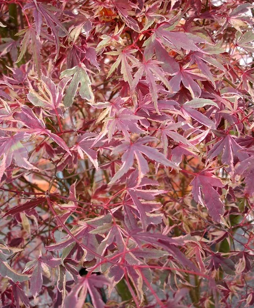 Клён японский Beny Chichi-henge - растет медленно. Требует укрытия в зимний период. Светолюбив, переносит полутень. Предпочитает слабо кислые почвы. Не переносит засуху, застоя воды и засоленных почв. Страдает от уплотнения почвы. Высота 2-3 м. Крона плотная, вертикальная, широко разветвленная форма. Листья крупные, 5-7 лопастные, при распускании светло-зеленые с розовой окантовкой, затем окантовка меняет цвет на кремовый, и осенью листья неравномерно меняют цвет на лососевый или оранжевый. Цветет в мае. Цветки и соцветия желтые. Плоды крылатки буровато-желтые.